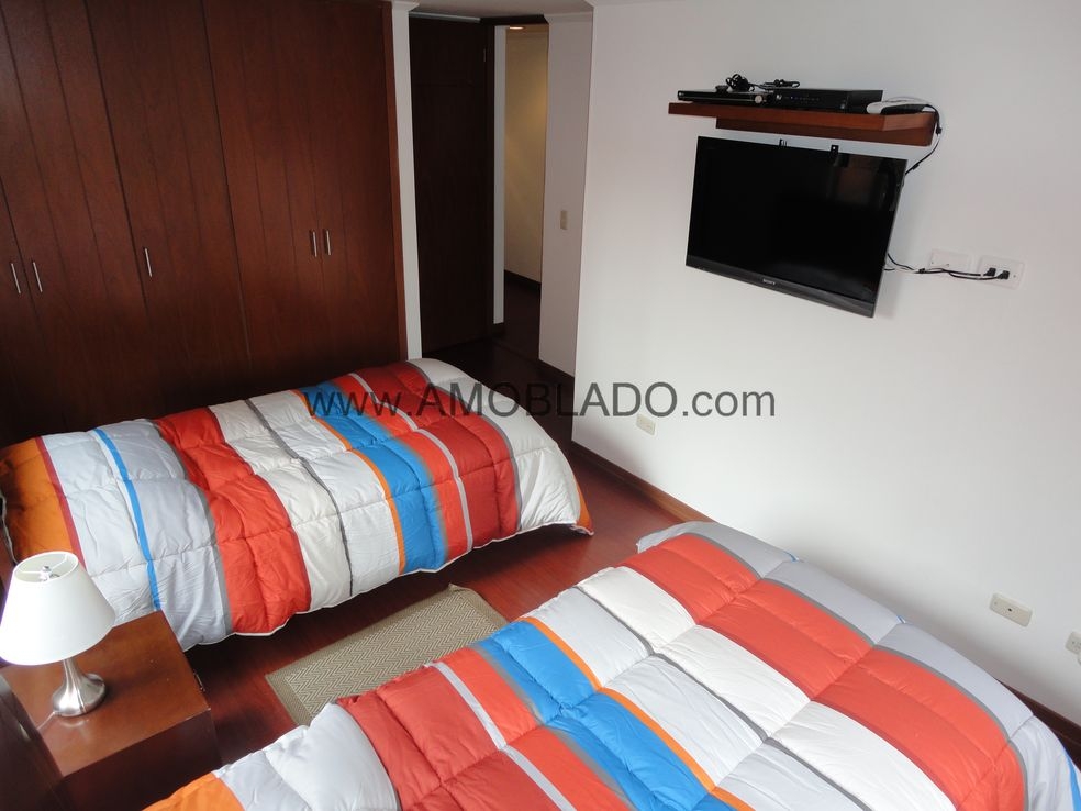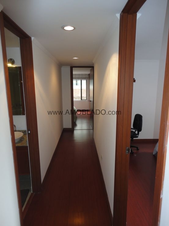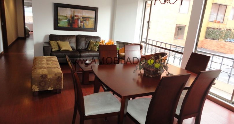 Lindo apartamento completamente amoblado y equipado ubicado en el barrio San Patricio de Bogotá. Por su accesibilidad y por su ubicación estratégica es uno de los barrios de estrato seis con mayor auge de crecimiento en la ciudad, gracias a su cercanía al Centro Empresarial Santa Bárbara.